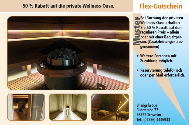 Alternativ können Sie aber auch als Einzelperson den Flex-Gutschein einlösen und erhalten den auf dem Gutschein abgedruckten Nachlass als Single in der Regel 50%).